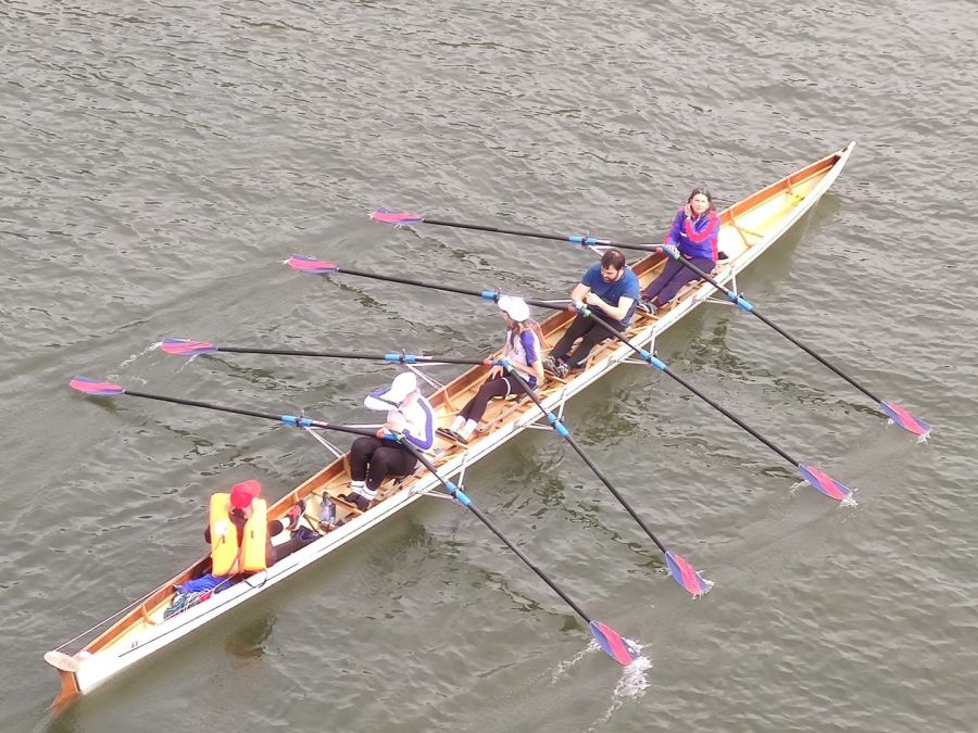 Quatre yolettes et le huit étaient au départ pour une randonnée sur l’Oise, 24km au programme avec un déjeuner au restaurant sur les quais de la rivière.